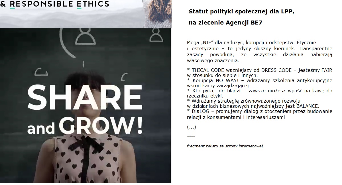LPP - tekst o polityce społecznej firmy, na zlecenie BE7