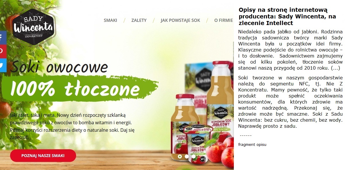 SADY WINCENTA- teksty na www, na zlecenie Intellect