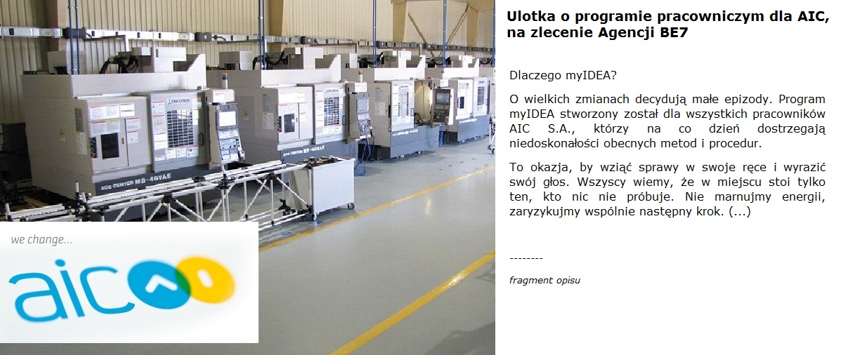 AIC  - ulotka o programie pracowniczym, na zlecenie BE7